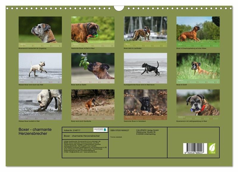 QUALITÄT - Hochwertiger Fotokalender mit 12 wunderschönen Motiven auf lichtbeständigem Bilderdruckpapier, robuste Spiralbindung mit Aufhängebügel.NACHHALTIG - deutliche Abfallreduzierung durch bedarfsgerechte Einzelstückfertigung, umweltfreundliches FSC-zertifiziertes Papier, Produktion in Deutschland, klimabewusste Logistik.PERFEKTES GESCHENK - Kalender für Freunde und Familie, für Kinder und Erwachsene, jung und alt, zu Weihnachten, Geburtstag oder zwischendurch.VIELFALT - Bildkalender in verschiedenen Formaten, z.B. DIN A5, DIN A4, DIN A3 sowie DIN A2. Ob Naturmotiv, Gemälde oder Fotos, ideal für ein persönliches Wohlfühlambiente.Kraftvoll, verspielt und loyal - der Boxer begeistert mit seinem einzigartigen Charme. von Autor(in): Yvonne Janetzek