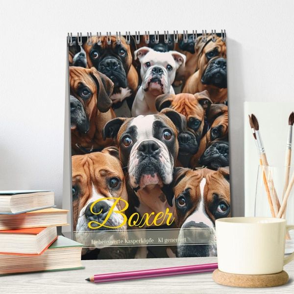 Ihr Kalender mit KI generierten Bilder einer der lustigsten und liebenswertesten Hunderasse: der Boxer. Die trolligen Samtschnuten verzaubern und begeistern immer wieder aufs Neue, bringen uns zum Lachen und erfüllen unser Herz mit Wärme, Zuneigung und Loyalität.