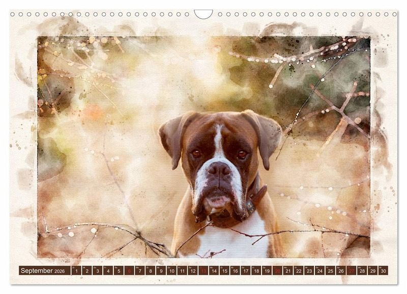Boxer, sportliche Familienhunde mit ganz viel Charakter. Ihr Charme und ihre Schönheit kommen hier in dreizehn wundervollen Portraits besonders gut zur Geltung, denn die Fotografien wurden liebevoll mit einer Watercolortechnik bearbeitet. Herausgekommen ist ein wunderbar dekorativer Wandkalender dieser faszinierenden Hunderasse.