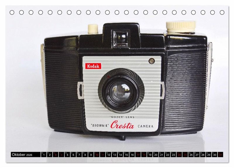 Oktober: Die ab 1955 vertriebene Kodak Brownie Cresta I war eine technisch einfache Boxkamera aus Bakelit und wurde in verschiedenen Versionen bis 1965 produziert.