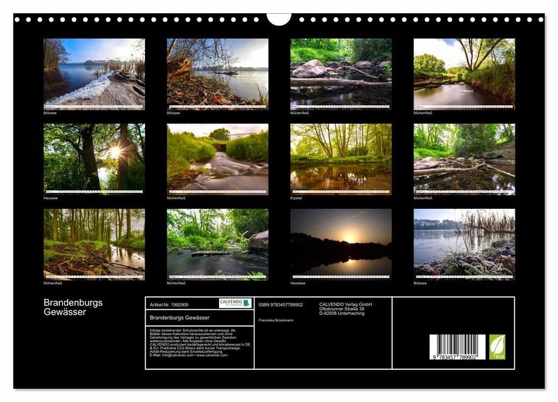Dieser Kalender beinhaltet eine Sammlung von ausgewählten Wasserlandschaften in Brandenburg. Es werden Seen und Flüsse in Brandenburg gezeigt, die allesamt ein schönes Ambiente bieten. Alle Orte sind dabei namentlich genannt.