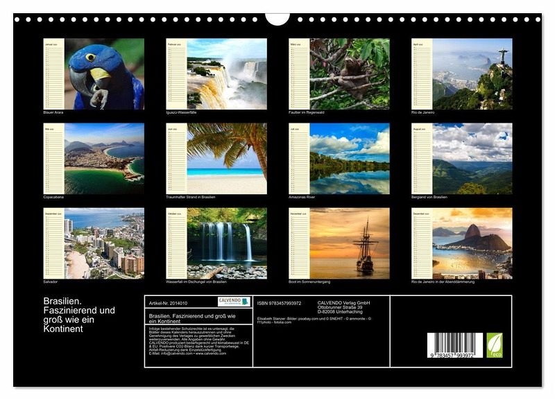 QUALITÄT - Hochwertiger Fotokalender mit 12 wunderschönen Motiven auf lichtbeständigem Bilderdruckpapier, robuste Spiralbindung mit Aufhängebügel.NACHHALTIG - deutliche Abfallreduzierung durch bedarfsgerechte Einzelstückfertigung, umweltfreundliches FSC-zertifiziertes Papier, Produktion in Deutschland, klimabewusste Logistik.PERFEKTES GESCHENK - Kalender für Freunde und Familie, für Kinder und Erwachsene, jung und alt, zu Weihnachten, Geburtstag oder zwischendurch.VIELFALT - Bildkalender in verschiedenen Formaten, z.B. DIN A5, DIN A4, DIN A3 sowie DIN A2. Ob Naturmotiv, Gemälde oder Fotos, ideal für ein persönliches Wohlfühlambiente.Die Schönheit und Faszination Brasiliens von Autor(in): Elisabeth Stanzer