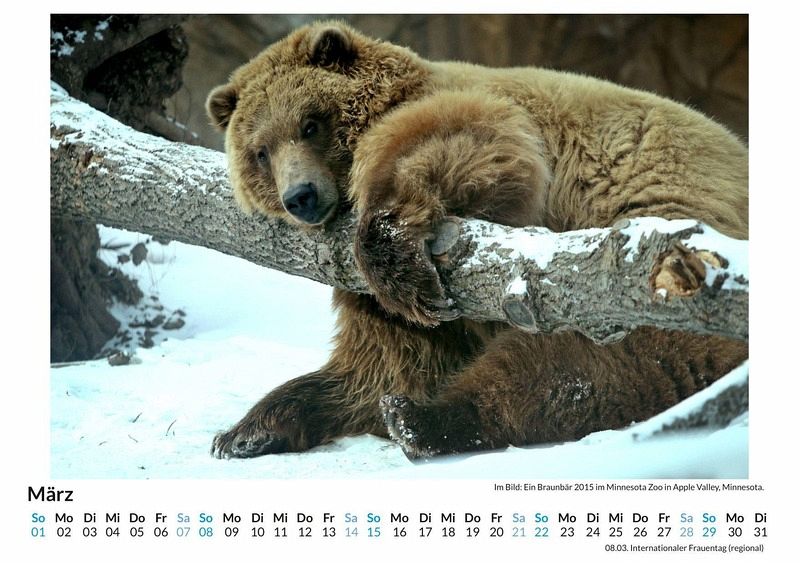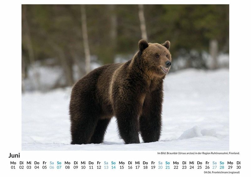 Entdecken Sie die majestätische Welt der Braunbären mit unserem exklusiven Wandkalender "Braunbär im Winter". Lassen Sie sich Monat für Monat von 12 atemberaubenden Motiven dieser faszinierenden Tiere verzaubern - gedruckt auf hochwertigem, lichtbeständigem Bilderdruckpapier. Jeder Kalender wird in Deutschland auf FSC-zertifiziertem Papier produziert, um höchste Qualität und Nachhaltigkeit zu gewährleisten. Perfekt für Naturliebhaber und Tierfreunde, die sich das ganze Jahr über an der Schönheit der Braunbären erfreuen möchten. Holen Sie sich jetzt dieses einzigartige Kunstwerk für Ihr Zuhause oder als Geschenk für Ihre Liebsten! Hochwertig Erleben Sie ein Jahr voller Eleganz mit unserem Premium-Fotokalender. Jedes der 12 Motive ist auf hochwertigem, lichtbeständigem Bilderdruckpapier gedruckt, um die Lebendigkeit jedes Bildes zu bewahren. Die robuste Spiralbindung gewährleistet Langlebigkeit und einfache Handhabung. Nachhaltig Unser Engagement für die Umwelt spiegelt sich in jedem Exemplar wider. Durch die Produktion auf Abruf reduzieren wir signifikant unseren Abfall. Wir verwenden ausschließlich umweltfreundliches, FSC-zertifiziertes Papier. Stolz gefertigt in Deutschland, achten wir bei unserer Logistik auf Klimaschutz, um unseren ökologischen Fußabdruck zu minimieren. Das ideale Geschenk Dieser Kalender ist das perfekte Präsent für jeden Anlass - ob Weihnachten, Geburtstage oder einfach als liebevolle Aufmerksamkeit zwischendurch. Geeignet für Freunde, Familie, Kinder und Erwachsene gleichermaßen, bereichert er jedes Zuhause mit seiner Vielfalt und Schönheit, unabhängig vom Alter der Beschenkten.
