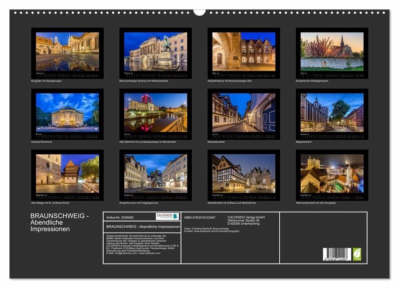 Tauchen Sie ein in eine der schönsten Städte im südöstlichen Niedersachsen und lassen Sie sich mit diesem Kalender von zwölf abendlichen Aufnahmen durchs Jahr begleiten. Gerade in den Abendstunden entfalten viele Plätze Braunschweigs ihre ganz eigene Leuchtkraft und die malerischen Seiten der Stadt kommen besonders gut zur Geltung.