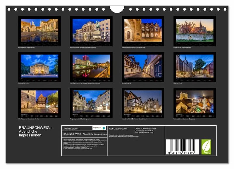 Tauchen Sie ein in eine der schönsten Städte im südöstlichen Niedersachsen und lassen Sie sich mit diesem Kalender von zwölf abendlichen Aufnahmen durchs Jahr begleiten. Gerade in den Abendstunden entfalten viele Plätze Braunschweigs ihre ganz eigene Leuchtkraft und die malerischen Seiten der Stadt kommen besonders gut zur Geltung.