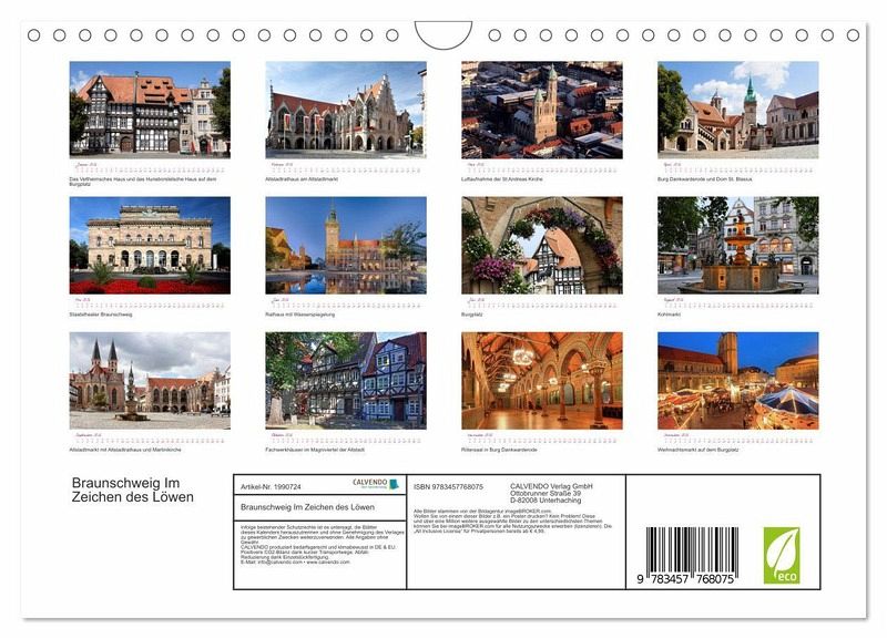 Am Burgplatz bietet die Burg von Dankwarderode Kunst aus dem Mittelalter. Das aus dem Hochmittelalter stammende Denkmal Braunschweiger Löwe und die romanische Kathedrale sind die Highlights Braunschweigs und werden in diesem Kalender vorgestellt.