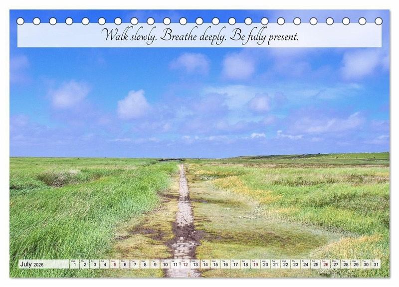 Take a break from constantly being on the go. This mindfulness calendar accompanies you through the year with expressive nature photographs and subtle words of inspiration. Month after month, it invites you to switch off autopilot and become more mindful of life again. Whether tranquil lakes, misty forests or a solitary cactus in the sun, each image opens up a small space for what lies beyond the hustle and bustle. Perception, silence, orientation. A poetic calendar that doesn't need to be loud to have a profound effect.