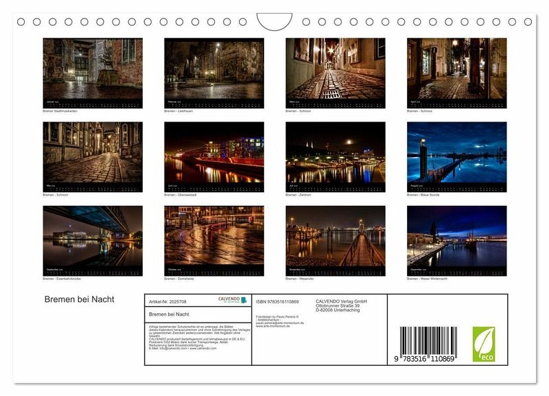 QUALITÄT - Hochwertiger Fotokalender mit 12 wunderschönen Motiven auf lichtbeständigem Bilderdruckpapier, robuste Spiralbindung mit Aufhängebügel.NACHHALTIG - deutliche Abfallreduzierung durch bedarfsgerechte Einzelstückfertigung, umweltfreundliches FSC-zertifiziertes Papier, Produktion in Deutschland, klimabewusste Logistik.PERFEKTES GESCHENK - Kalender für Freunde und Familie, für Kinder und Erwachsene, jung und alt, zu Weihnachten, Geburtstag oder zwischendurch.VIELFALT - Bildkalender in verschiedenen Formaten, z.B. DIN A5, DIN A4, DIN A3 sowie DIN A2. Ob Naturmotiv, Gemälde oder Fotos, ideal fürein persönliches Wohlfühlambiente.Bremen bei Nacht - Ansichten einer Stadt von Autor(in): ArteMomentum