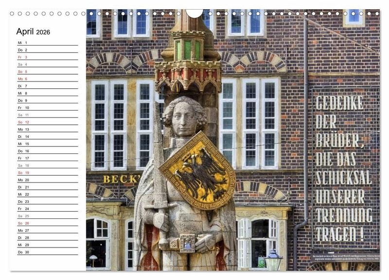 April: Der Roland auf dem Marktplatz vor dem Rathaus wurde 1404 errichtet