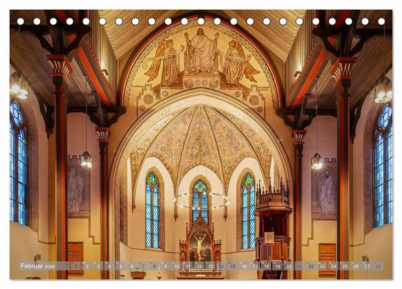 Jeden Monat entführt Sie dieser atemberaubende Kalender in eine andere evangelische Kirche in Bremen. Erleben Sie die kunstvollen Deckenmalereien, beeindruckenden Orgeln, schillernden Glasfenster und die prachtvolle Ausstattung, die diese sakralen Räume so besonders machen.