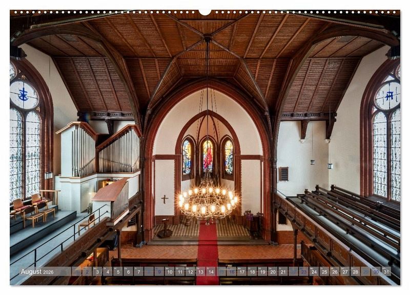 Jeden Monat entführt Sie dieser atemberaubende Kalender in eine andere evangelische Kirche in Bremen. Erleben Sie die kunstvollen Deckenmalereien, beeindruckenden Orgeln, schillernden Glasfenster und die prachtvolle Ausstattung, die diese sakralen Räume so besonders machen.