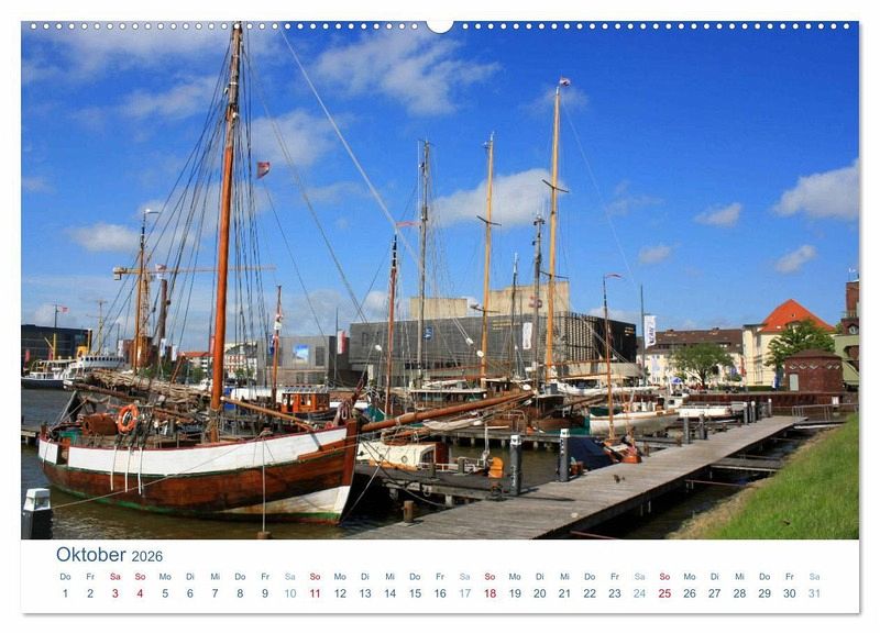 Bremerhaven ist mit seinen Havenwelten ein Kunstwerk gelungen. Der Gegensatz zwischen Alt und Neu sowie Tradition und Moderne begeistert auf den ersten Blick. Der Kalender stammt von der Hamburger Fotokünstlerin Steffani Lehmann, die in Butjadingen lebt und arbeitet.