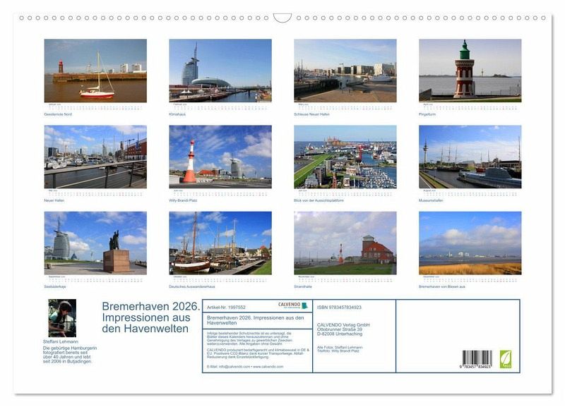 QUALITÄT - Hochwertiger Fotokalender mit 12 wunderschönen Motiven auf lichtbeständigem Bilderdruckpapier, robuste Spiralbindung mit Aufhängebügel.NACHHALTIG - deutliche Abfallreduzierung durch bedarfsgerechte Einzelstückfertigung, umweltfreundliches FSC-zertifiziertes Papier, Produktion in Deutschland, klimabewusste Logistik.PERFEKTES GESCHENK - Kalender für Freunde und Familie, für Kinder und Erwachsene, jung und alt, zu Weihnachten, Geburtstag oder zwischendurch.VIELFALT - Bildkalender in verschiedenen Formaten, z.B. DIN A5, DIN A4, DIN A3 sowie DIN A2. Ob Naturmotiv, Gemälde oder Fotos, ideal für ein persönliches Wohlfühlambiente.12 verschiedene Fotoimpressionen von Bremerhavens schönster Ecke von Autor(in): Steffani Lehmann