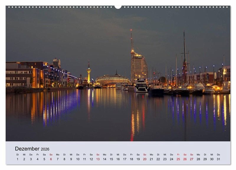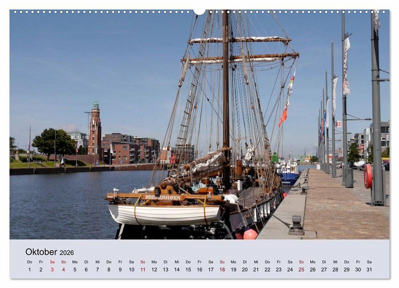 Der Kalender zeigt Ihnen die Sehenswürdigkeiten Bremerhavens! Am Ortseingang der Fischereihafen mit seinem Schaufenster (Restaurants, Kneipen, Geschäfte mit maritimem Zubehör). Weiter nach Geestemünde zum Holzhafen und zur Geestemündung. Dann die Stadtmitte mit Segelschiffen, Leuchttürmen, Klimahaus, Mediterraneo sowie dem Atlantic Hotel City (Dubai Turm). Auch nicht zu vernachlässigen der schöne Gesundheitspark Speckenbüttel mit seiner Bockwindmühle.