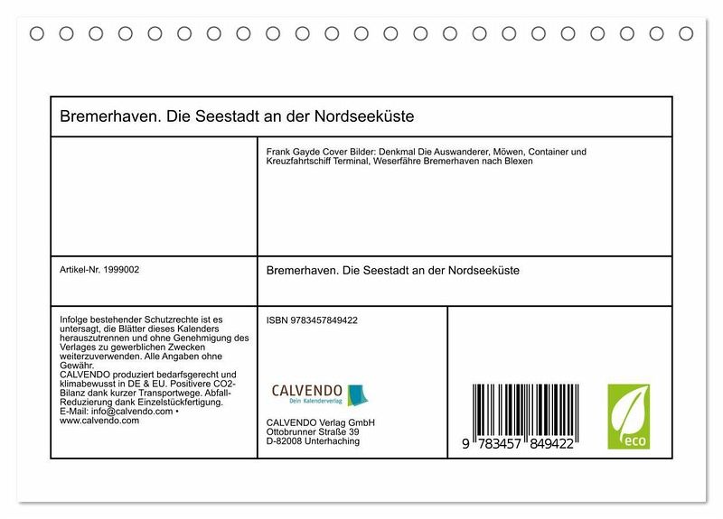 QUALITÄT - Hochwertiger Fotokalender mit 12 wunderschönen Motiven auf lichtbeständigem Bilderdruckpapier, robuste Spiralbindung.NACHHALTIG - deutliche Abfallreduzierung durch bedarfsgerechte Einzelstückfertigung, umweltfreundliches FSC-zertifiziertes Papier, Produktion in Deutschland, klimabewusste Logistik.PERFEKTES GESCHENK - Kalender für Freunde und Familie, für Kinder und Erwachsene, jung und alt, zu Weihnachten, Geburtstag oder zwischendurch.VIELFALT - Bildkalender in verschiedenen Formaten, z.B. DIN A5, DIN A4, DIN A3 sowie DIN A2. Ob Naturmotiv, Gemälde oder Fotos, ideal für ein persönliches Wohlfühlambiente.Bremerhaven hat sich in den letzten Jahren zur beliebten Touristen-Stadt entwickelt von Autor(in): Frank Gayde
