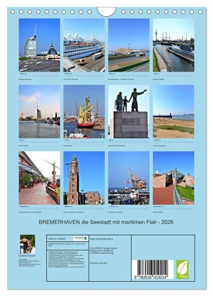 QUALITÄT - Hochwertiger Fotokalender mit 12 wunderschönen Motiven auf lichtbeständigem Bilderdruckpapier, robuste Spiralbindung mit Aufhängebügel.NACHHALTIG - deutliche Abfallreduzierung durch bedarfsgerechte Einzelstückfertigung, umweltfreundliches FSC-zertifiziertes Papier, Produktion in Deutschland, klimabewusste Logistik.PERFEKTES GESCHENK - Kalender für Freunde und Familie, für Kinder und Erwachsene, jung und alt, zu Weihnachten, Geburtstag oder zwischendurch.VIELFALT - Bildkalender in verschiedenen Formaten, z.B. DIN A5, DIN A4, DIN A3 sowie DIN A2. Ob Naturmotiv, Gemälde oder Fotos, ideal für ein persönliches Wohlfühlambiente.Bremerhaven, ein maritimes Erlebnis der besonderen Art von Autor(in):Günther Klünder