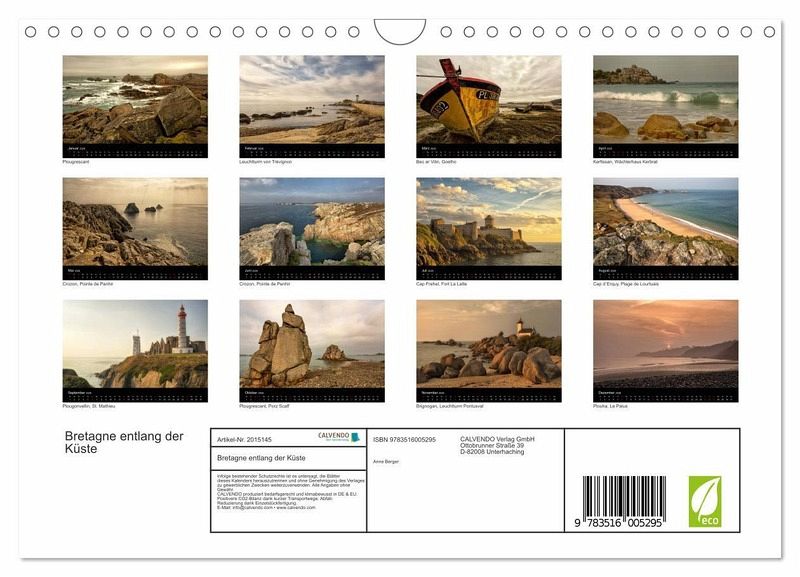 QUALITÄT - Hochwertiger Fotokalender mit 12 wunderschönen Motiven auf lichtbeständigem Bilderdruckpapier, robuste Spiralbindung mit Aufhängebügel.NACHHALTIG - deutliche Abfallreduzierung durch bedarfsgerechte Einzelstückfertigung, umweltfreundliches FSC-zertifiziertes Papier, Produktion in Deutschland, klimabewusste Logistik.PERFEKTES GESCHENK - Kalender für Freunde und Familie, für Kinder und Erwachsene, jung und alt, zu Weihnachten, Geburtstag oder zwischendurch.VIELFALT - Bildkalender in verschiedenen Formaten, z.B. DIN A5, DIN A4, DIN A3 sowie DIN A2. Ob Naturmotiv, Gemälde oder Fotos, ideal für ein persönliches Wohlfühlambiente.Fotokalender der bretonischen Küste von Autor(in): Anne Berger