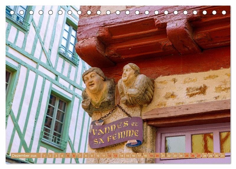 Dezember: Holzskulpturen Vannes et sa Femme an der Rue des Halles in der Altstadt von Vannes