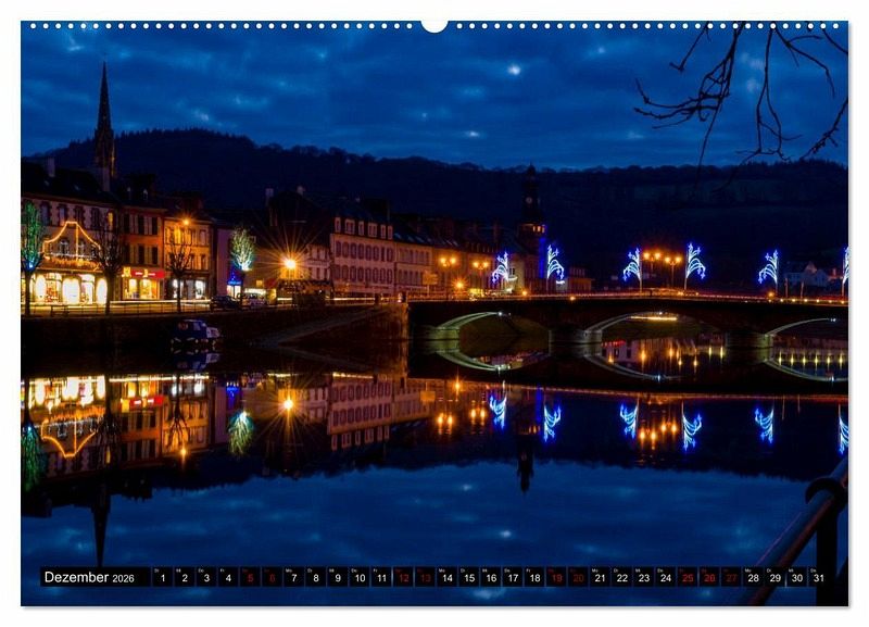 Dezember: Brücke von Châteaulin weihnachtlich geschmückt