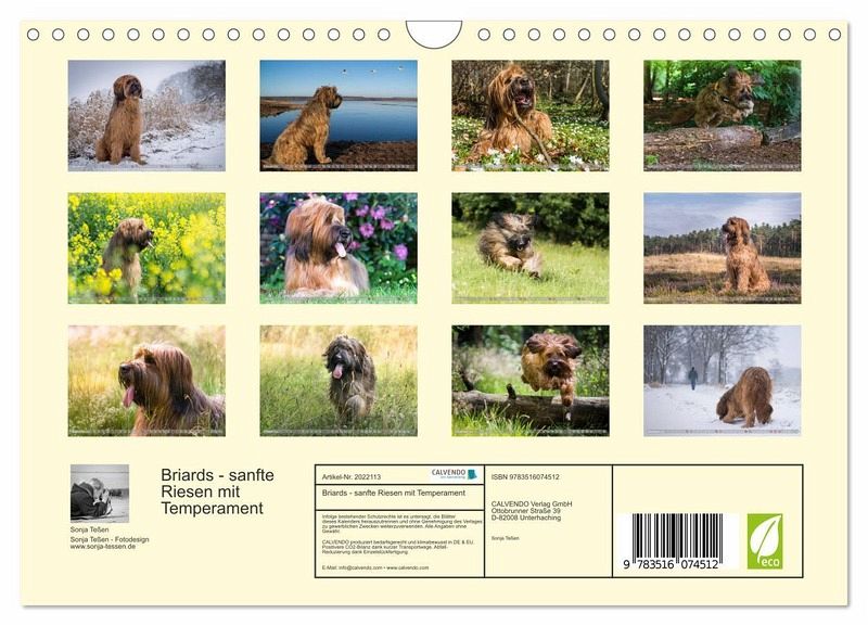QUALITÄT - Hochwertiger Fotokalender mit 12 wunderschönen Motiven auf lichtbeständigem Bilderdruckpapier, robuste Spiralbindung mit Aufhängebügel.NACHHALTIG - deutliche Abfallreduzierung durch bedarfsgerechte Einzelstückfertigung, umweltfreundliches FSC-zertifiziertes Papier, Produktion in Deutschland, klimabewusste Logistik.PERFEKTES GESCHENK - Kalender für Freunde und Familie, für Kinder und Erwachsene, jung und alt, zu Weihnachten, Geburtstag oder zwischendurch.VIELFALT - Bildkalender in verschiedenen Formaten, z.B. DIN A5, DIN A4, DIN A3 sowie DIN A2. Ob Naturmotiv, Gemälde oder Fotos, ideal für ein persönliches Wohlfühlambiente.Tolle Portraits und Actionbilder von einer wunderbaren Hunderasse: Dem Briard. von Autor(in): Sonja Teßen