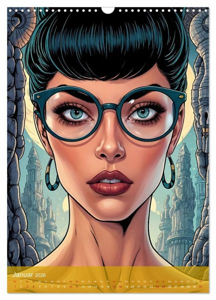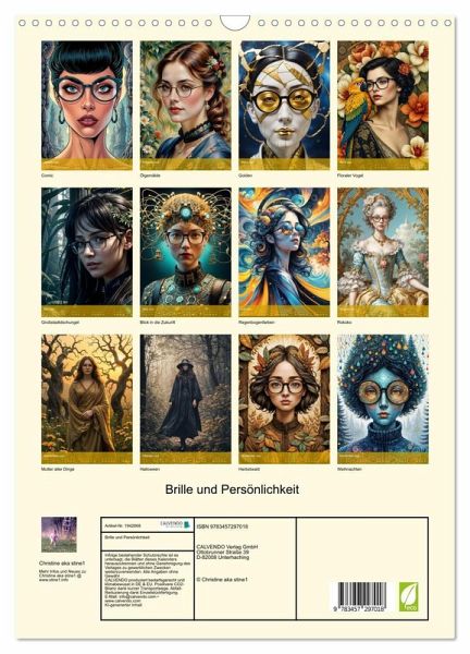 12 Frauen, 12 inspirierende Perspektiven - Eine kreative Reise durch die Welt der Brillen. Tauchen Sie ein in die Welt der Fantasie und Kunst mit außergewöhnlichen Motiven von Christine aka stine1. Jeder Monat präsentiert eine einzigartige Frau in unterschiedlichen Kunststilen - von futuristisch bis klassisch, von surreal bis modern -, alle mit dem verbindenden Element der Brille. Kreativ unterstützt durch KI, verbindet dieser Kalender Inspiration und Individualität und feiert die Kraft und Schönheit starker Frauen. Perfekt für Kunstliebhaber, Brillenfans und optische Visionäre!