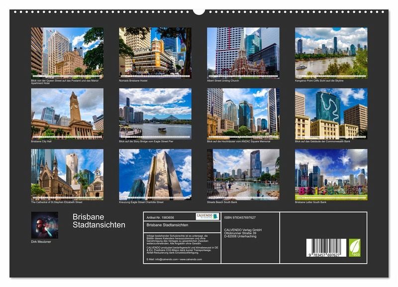 PREMIUM-LINIE - Brillanter Fotokalender mit 12 wunderschönen Motiven, Kunstdruck in Hochglanz in Museumsqualität.QUALITÄT - edle Materialien, stabile Rückwand mit 2 innovativen Einstecktaschen für eine optimale Präsentation an der Wand.NACHHALTIG - deutliche Abfallreduzierung durch bedarfsgerechte Einzelstückfertigung, umweltfreundliches FSC-zertifiziertes Papier, Produktion in Deutschland,klimabewusste Logistik.PERFEKTES GESCHENK - Kalender für Freunde und Familie, für Kinder und Erwachsene, jung und alt, zu Weihnachten, Geburtstag oder zwischendurch.Zwölf wunderschöne Bilder der Stadt Brisbane von Autor(in): Dirk Meutzner