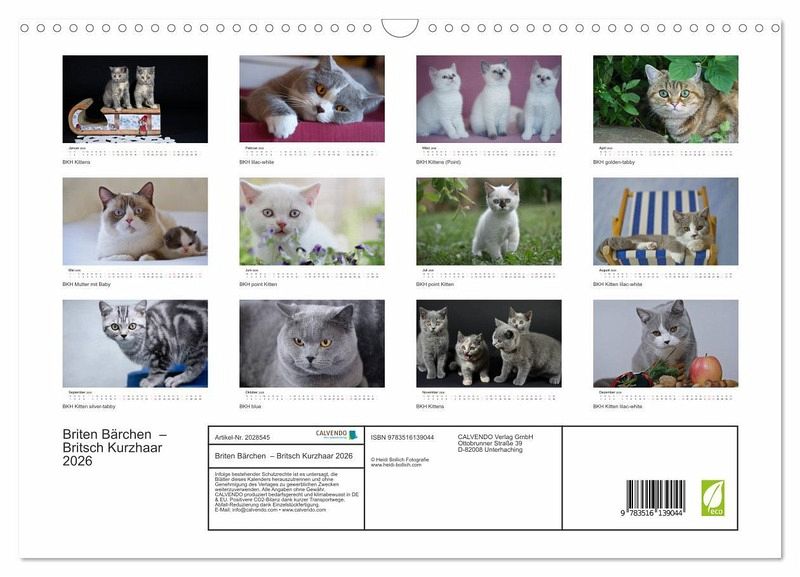 QUALITÄT - Hochwertiger Fotokalender mit 12 wunderschönen Motiven auf lichtbeständigem Bilderdruckpapier, robuste Spiralbindung mit Aufhängebügel.NACHHALTIG - deutliche Abfallreduzierung durch bedarfsgerechte Einzelstückfertigung, umweltfreundliches FSC-zertifiziertes Papier, Produktion in Deutschland, klimabewusste Logistik.PERFEKTES GESCHENK - Kalender für Freunde und Familie, für Kinder und Erwachsene, jung und alt, zu Weihnachten, Geburtstag oder zwischendurch.VIELFALT - Bildkalender in verschiedenen Formaten, z.B. DIN A5, DIN A4, DIN A3 sowie DIN A2. Ob Naturmotiv, Gemälde oder Fotos, ideal für ein persönliches Wohlfühlambiente.Mit den Britisch Kurzhaar Katzen durch ein ganzes Jahr von Autor(in): Heidi Bollich