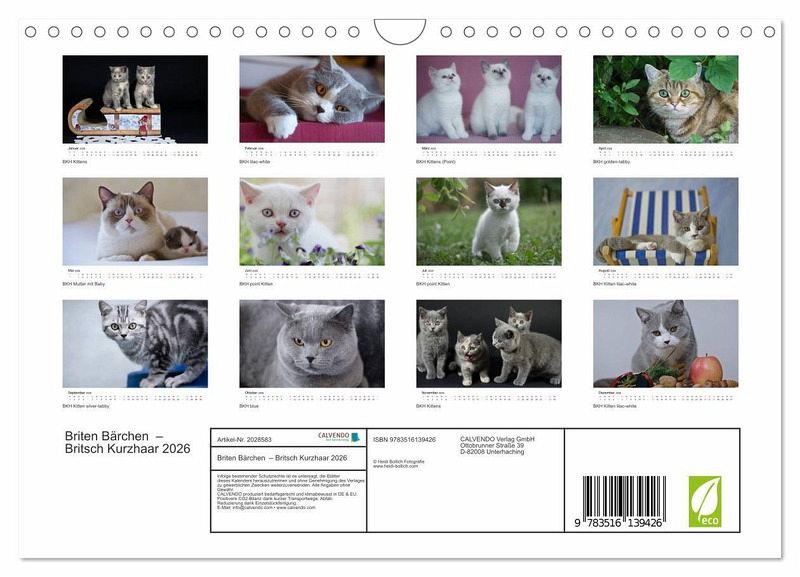 QUALITÄT - Hochwertiger Fotokalender mit 12 wunderschönen Motiven auf lichtbeständigem Bilderdruckpapier, robuste Spiralbindung mit Aufhängebügel.NACHHALTIG - deutliche Abfallreduzierung durch bedarfsgerechte Einzelstückfertigung, umweltfreundliches FSC-zertifiziertes Papier, Produktion in Deutschland, klimabewusste Logistik.PERFEKTES GESCHENK - Kalender für Freunde und Familie, für Kinder und Erwachsene, jung und alt, zu Weihnachten, Geburtstag oder zwischendurch.VIELFALT - Bildkalender in verschiedenen Formaten, z.B. DIN A5, DIN A4, DIN A3 sowie DIN A2. Ob Naturmotiv, Gemälde oder Fotos, ideal für ein persönliches Wohlfühlambiente.Mit den Britisch Kurzhaar Katzen durch ein ganzes Jahr von Autor(in): Heidi Bollich