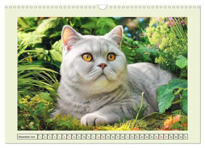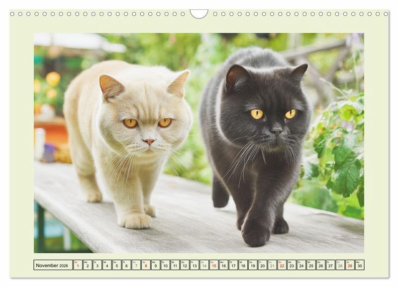 Dieser Kalender widmet sich der unverwechselbaren Ausstrahlung der British Shorthair - mit ihren runden Gesichtern, ausdrucksstarken Augen und plüschigem Fell. Alle Bilder wurden mit der Hilfe von KI erstellt und zeigen die Katzen in liebevoll gestalteten Gartenszenen. Ob neugierig, gelassen oder verspielt, jede Szene fängt die besondere Persönlichkeit dieser Rasse auf eindrucksvolle Weise ein. Ein stilvoller Begleiter durchs Jahr für alle Katzenfreunde und Liebhaber britischer Samtpfoten.