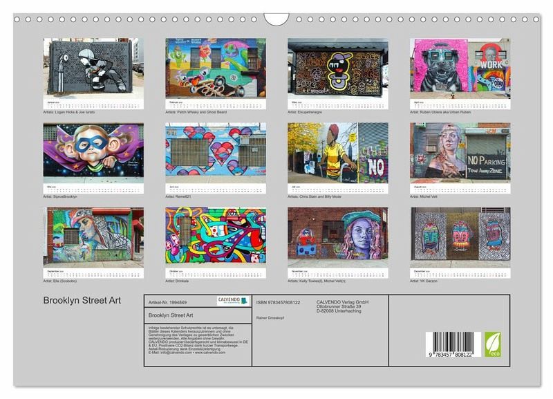 QUALITÄT - Hochwertiger Fotokalender mit 12 wunderschönen Motiven auf lichtbeständigem Bilderdruckpapier, robuste Spiralbindung mit Aufhängebügel.NACHHALTIG - deutliche Abfallreduzierung durch bedarfsgerechte Einzelstückfertigung, umweltfreundliches FSC-zertifiziertes Papier, Produktion in Deutschland, klimabewusste Logistik.PERFEKTES GESCHENK - Kalender für Freunde und Familie, für Kinder und Erwachsene, jung und alt, zu Weihnachten, Geburtstag oder zwischendurch.VIELFALT - Bildkalender in verschiedenen Formaten, z.B. DIN A5, DIN A4, DIN A3 sowie DIN A2. Ob Naturmotiv, Gemälde oder Fotos, ideal für ein persönliches Wohlfühlambiente.Eindrucksvolle Graffitis und Wandmalereien vom Bushwick Collective in Brooklyn von Autor(in): gro