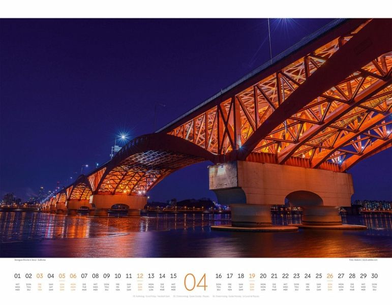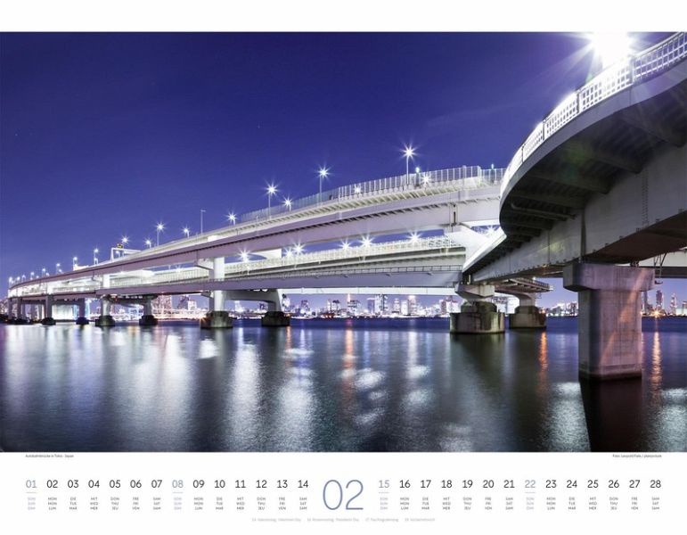 Zwölf Meisterwerke der Technik, die von ausgeklügelter Statik und architektonischer Eleganz zeugen: Brücken sind nicht nur Meister der Verbindung, sondern begeistern auch durch einen spannenden Mix aus Filigranität und Stabilität. Eingebettet in Städte oder Landschaften zeigt dieser Architekturkalender die faszinierenden Bauwerke in historischen oder modernen Versionen.