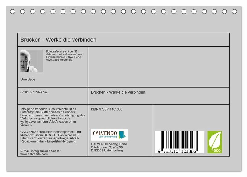 QUALITÄT - Hochwertiger Fotokalender mit 12 wunderschönen Motiven auf lichtbeständigem Bilderdruckpapier, robuste Spiralbindung.NACHHALTIG - deutliche Abfallreduzierung durch bedarfsgerechte Einzelstückfertigung, umweltfreundliches FSC-zertifiziertes Papier, Produktion in Deutschland, klimabewusste Logistik.PERFEKTES GESCHENK - Kalender für Freunde und Familie, für Kinder und Erwachsene, jung und alt, zu Weihnachten, Geburtstag oder zwischendurch.VIELFALT - Bildkalender in verschiedenen Formaten, z.B. DIN A5, DIN A4, DIN A3 sowie DIN A2. Ob Naturmotiv, Gemälde oder Fotos, ideal für ein persönliches Wohlfühlambiente.Faszinierende historische und moderne Brückenbauwerke aus verschiedenen Kontinenten von Autor(in): uwela