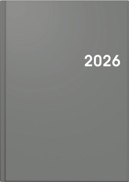 Blattgröße: 145 × 206 mm 1 Seite = 1 Tag, Sa. und So. auf einer Seite 352 Seiten, Druckfarbe Kalendarium: schwarz/rot 70 g/m², Klebebindung sechssprachig: deutsch, englisch, französisch, italienisch, spanisch, niederländisch Kunststoff-Einband Balacron, Farbe: grau Jahresübersicht Folgejahr, 4 Seiten Monatsplan aktuelles Jahr, 6 Seiten Monatsplan Folgejahr, Ferientermine Deutschland und Österreich, 1 Seite Notizen blanko, 10 Seiten Wissenswertes, 13 Seiten Adressen halbstündliche Einteilung von 7-23 Uhr, Sa. und So. stündliche Einteilung von 7-20 Uhr Eckperforation, Zeichenband für Kalenderjahr 2026