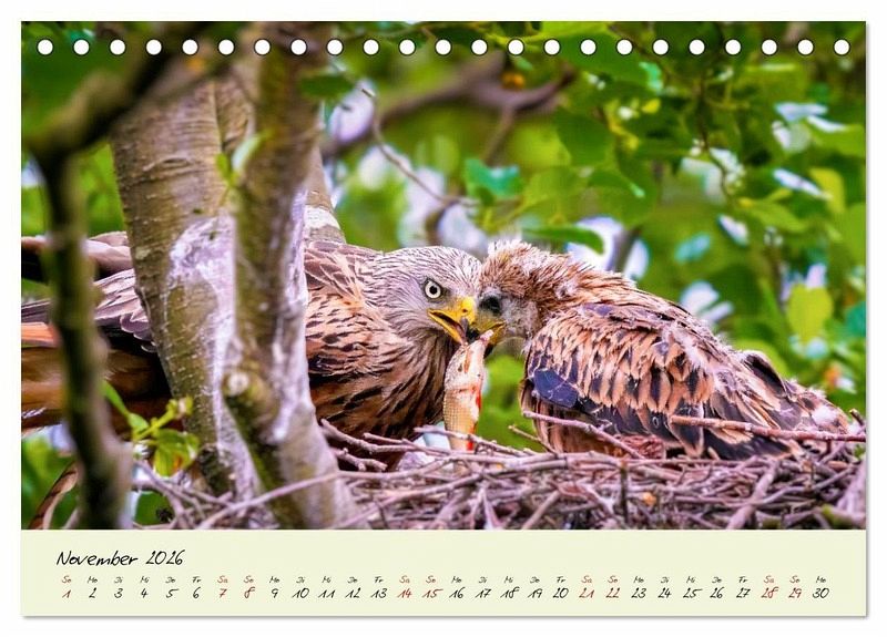 November: Ein Rotmilan füttert sein Junges mit frischem Fisch