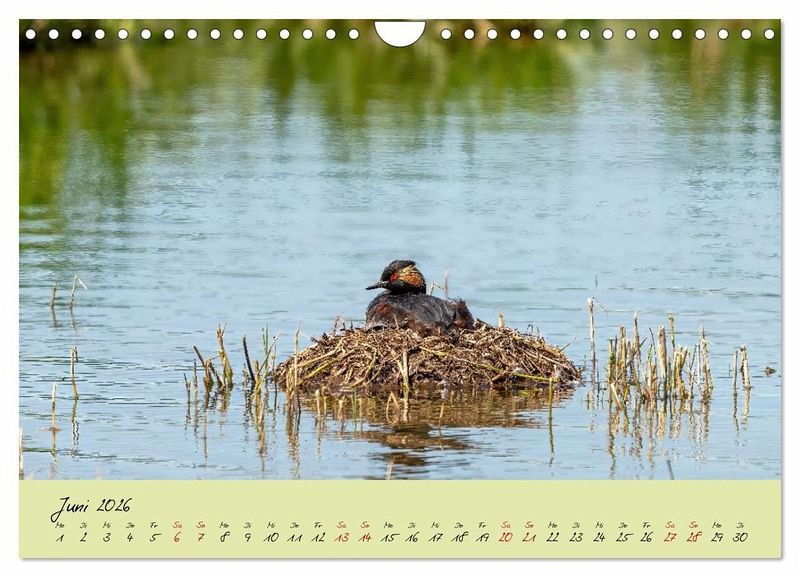 Juni: Ein Schwarzhalstaucher bei der Brut auf seinem Nest
