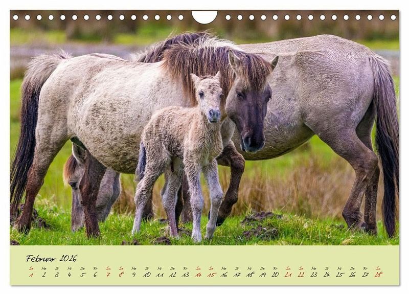 Februar: Ein erst geborenes Konik (Wildpferd) mit seiner Mama