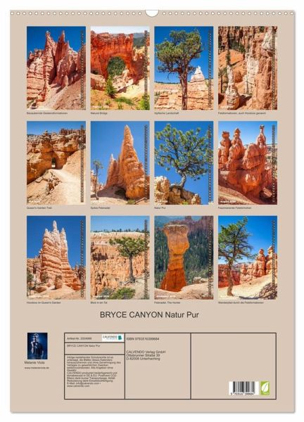 Der Bryce Canyon Nationalpark in Utah besitzt eine einzigartige Geologie. Farbige Felspyramiden, auch Hoodoos genannt, ragen in die Höhe. Die atemberaubenden Gesteinsformationen sind durch Erosionen des Regenwassers, Wind und Schneeschmelze entstanden. In diesem Kalender wurden 12 beeindruckende Ansichten zusammengetragen. Ein Streifzug durch die unberührte Region im Südwesten der USA.