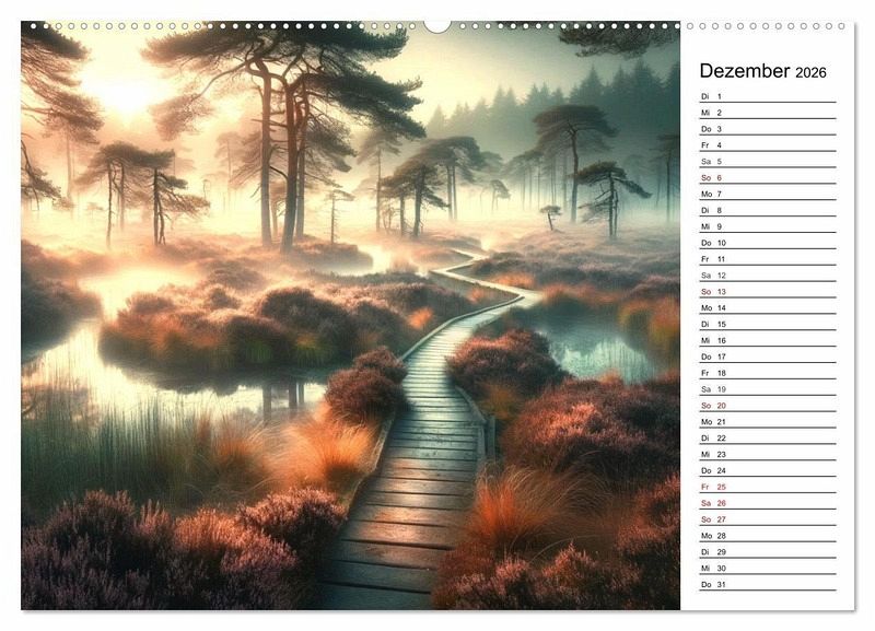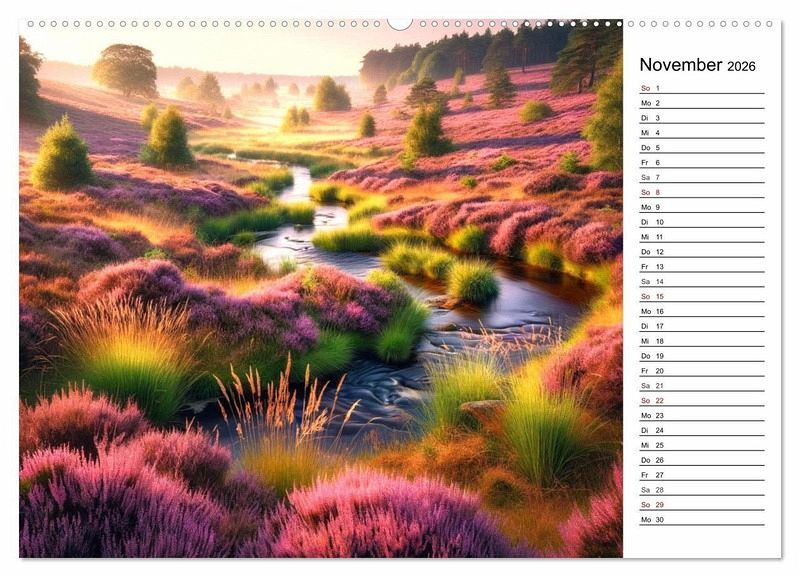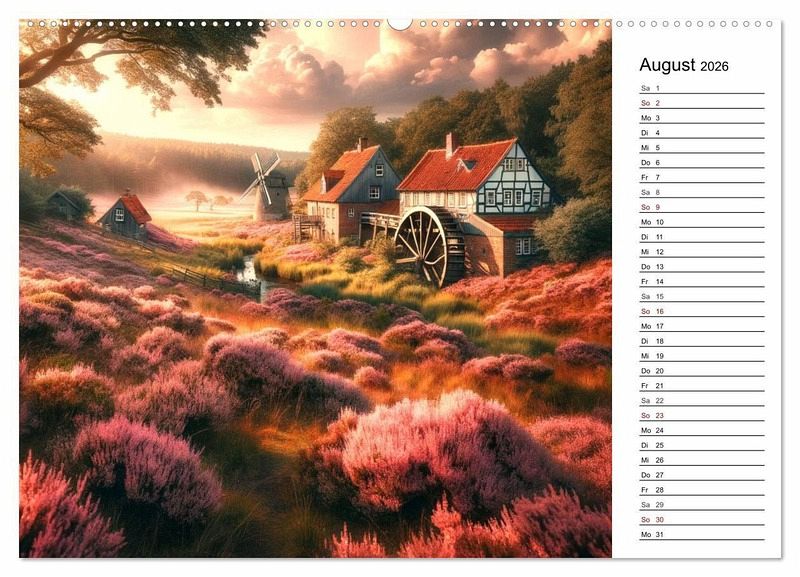 Dieses Projekt fängt die leuchtenden Farben der Lüneburger Heide ein, besonders zur Blütezeit im August, wenn sich die Landschaft in ein purpurnes Meer verwandelt. Jedes Kalenderblatt eröffnet einen neuen Blick auf die Gegend um Buchholz in der Nordheide, von der idyllischen Weseler Heide bis zum geheimnisvollen Radenbachtal. Die sorgfältig ausgewählten Bilder zelebrieren die Schönheit der Heide und laden zur Erkundung ihrer einzigartigen Landschaft ein. Ein Muss für jeden, der die Heidelandschaften zur Blütezeit liebt und sich von der Pracht der Natur inspirieren lässt. Abschließend sei erwähnt, dass die Illustrationen von KI entworfen wurden, was dem Kalender eine einzigartige Note verleiht.