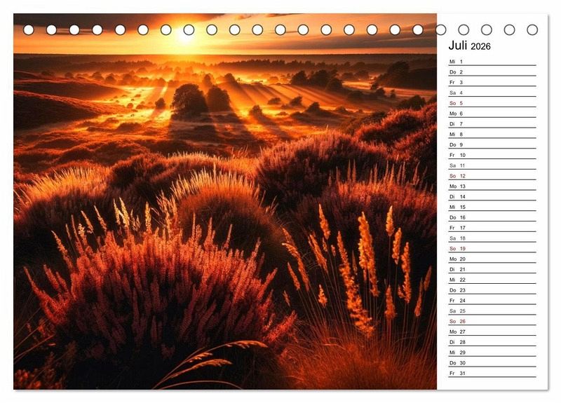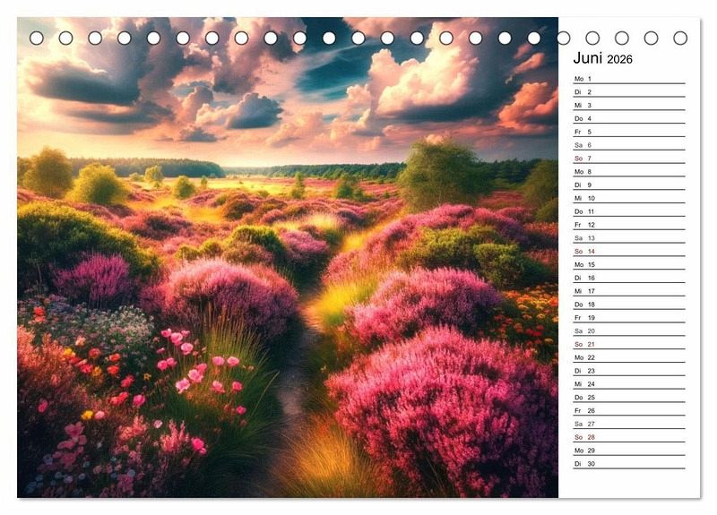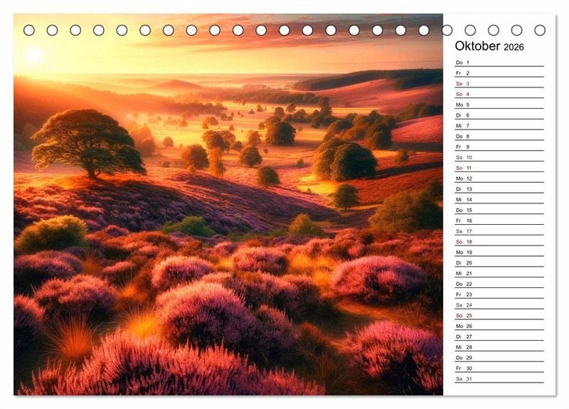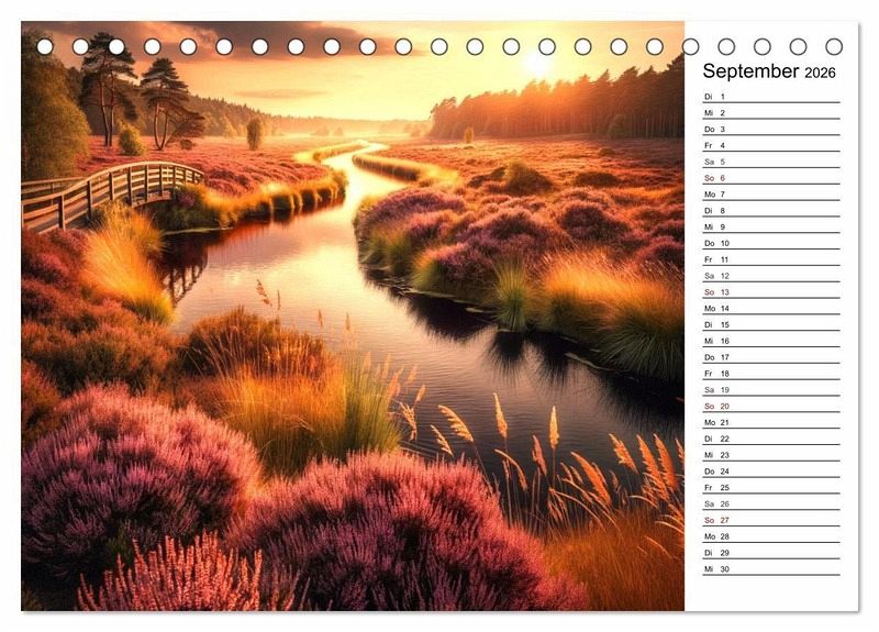 Dieses Projekt fängt die leuchtenden Farben der Lüneburger Heide ein, besonders zur Blütezeit im August, wenn sich die Landschaft in ein purpurnes Meer verwandelt. Jedes Kalenderblatt eröffnet einen neuen Blick auf die Gegend um Buchholz in der Nordheide, von der idyllischen Weseler Heide bis zum geheimnisvollen Radenbachtal. Die sorgfältig ausgewählten Bilder zelebrieren die Schönheit der Heide und laden zur Erkundung ihrer einzigartigen Landschaft ein. Ein Muss für jeden, der die Heidelandschaften zur Blütezeit liebt und sich von der Pracht der Natur inspirieren lässt. Abschließend sei erwähnt, dass die Illustrationen von KI entworfen wurden, was dem Kalender eine einzigartige Note verleiht.