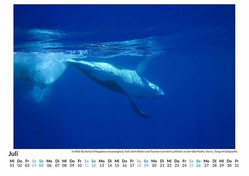 Tauchen Sie ein in die faszinierende Welt der Buckelwale mit unserem hochwertigen Wandkalender! Lassen Sie sich Monat für Monat von atemberaubenden Aufnahmen dieser majestätischen Meeresriesen verzaubern. Jedes der 12 sorgfältig ausgewählten Motive fängt die Schönheit und Eleganz dieser beeindruckenden Tiere perfekt ein. Gedruckt auf lichtbeständigem, FSC-zertifiziertem Bilderdruckpapier, garantiert der Kalender nicht nur brillante Farben, sondern auch eine nachhaltige Produktion in Deutschland. Ideal für Naturliebhaber und alle, die sich das Meer nach Hause holen möchten. Gönnen Sie sich oder Ihren Liebsten dieses besondere Stück Natur für Ihre Wände! Hochwertig Erleben Sie ein Jahr voller Eleganz mit unserem Premium-Fotokalender. Jedes der 12 Motive ist auf hochwertigem, lichtbeständigem Bilderdruckpapier gedruckt, um die Lebendigkeit jedes Bildes zu bewahren. Die robuste Spiralbindung gewährleistet Langlebigkeit und einfache Handhabung. Nachhaltig Unser Engagement für die Umwelt spiegelt sich in jedem Exemplar wider. Durch die Produktion auf Abruf reduzieren wir signifikant unseren Abfall. Wir verwenden ausschließlich umweltfreundliches, FSC-zertifiziertes Papier. Stolz gefertigt in Deutschland, achten wir bei unserer Logistik auf Klimaschutz, um unseren ökologischen Fußabdruck zu minimieren. Das ideale Geschenk Dieser Kalender ist das perfekte Präsent für jeden Anlass - ob Weihnachten, Geburtstage oder einfach als liebevolle Aufmerksamkeit zwischendurch. Geeignet für Freunde, Familie, Kinder und Erwachsene gleichermaßen, bereichert er jedes Zuhause mit seiner Vielfalt und Schönheit, unabhängig vom Alter der Beschenkten.
