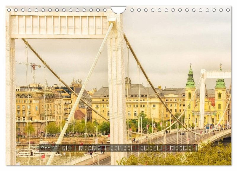 Oktober: Außergewöhnliche Ansicht der Elisabethbrücke - Erzsébet híd, mit Blick auf die Liebfrauenkirche