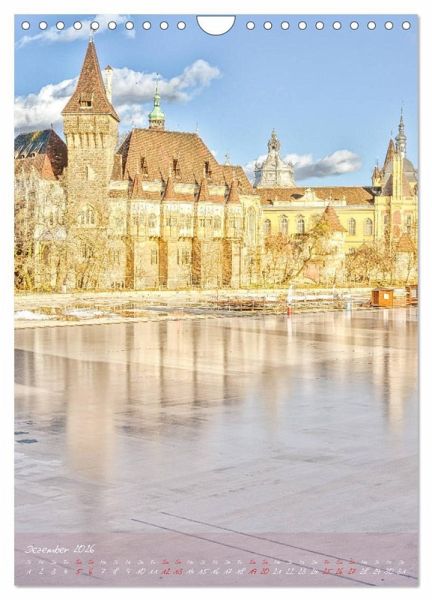 Dezember: Die Eisbahn vor Schloss Vajdahunyad, Városliget-See - Stadtpark, Városliget