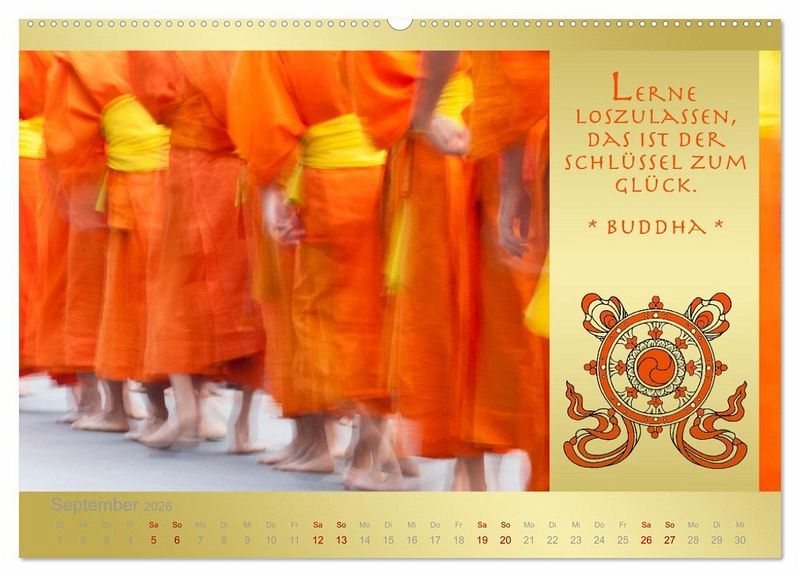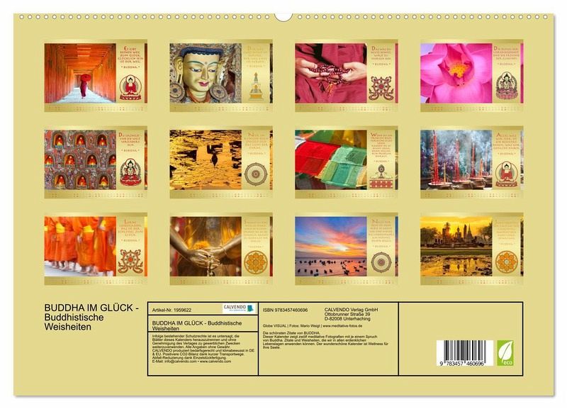 Dieser Kalender zeigt zwölf meditative Fotografien mit je einem Spruch von Buddha. Zitate und Weisheiten, die wir in allen erdenklichen Lebenslagen anwenden können. Der wunderschöne Kalender ist Wellness für Ihre Seele.