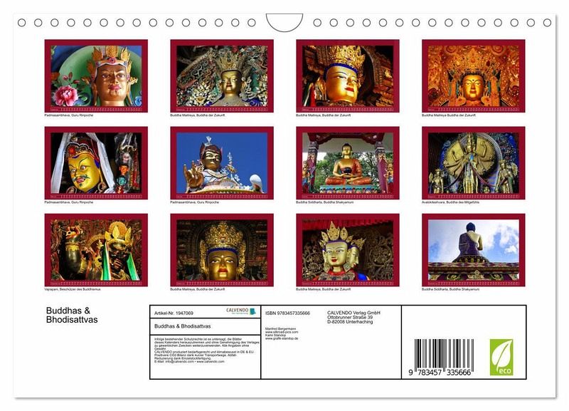 In der buddhistischen Kunst sind Darstellungen von Buddhas und Bhodisattvas allgegenwärtig. Im Laufe der Jahre hat sich ein vielfältiges System der Ikonographie und der Symbolik entwickelt. Ausgehend vom indischen Subkontinent hat sie sich in viele buddhistisch geprägte Räume ausgedehnt. Die Bilder des Kalenders wurde in vielen Reisen nach Tibet, Qinghai, Sichuan, Ladakh und Sikkim gemacht.