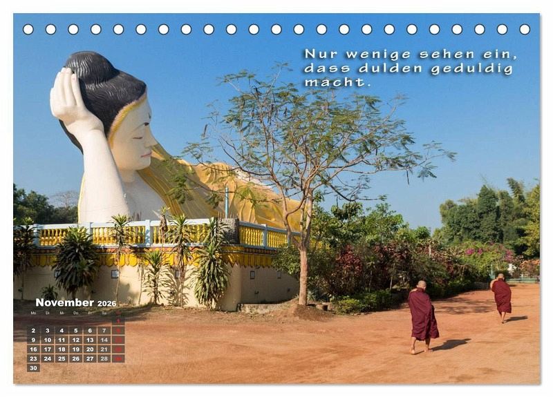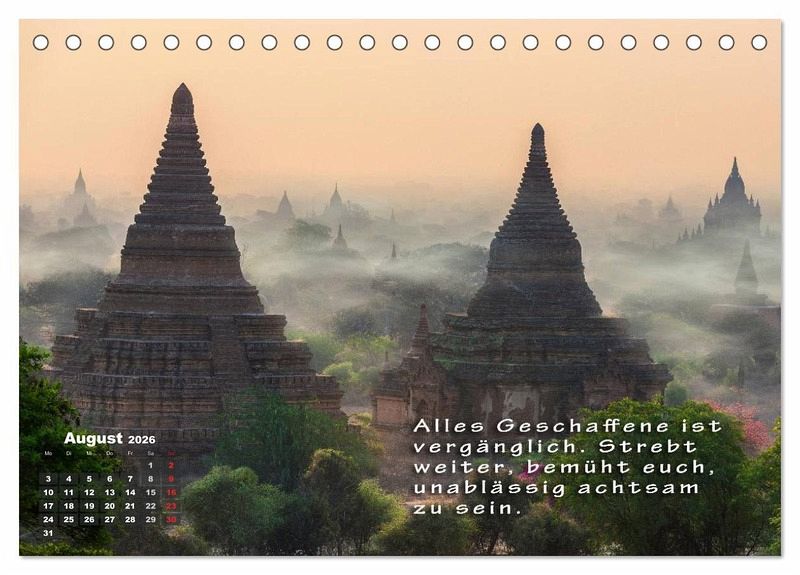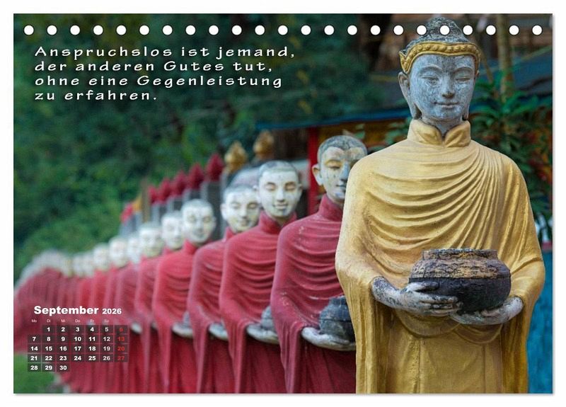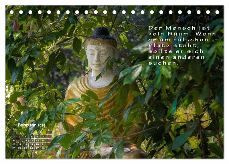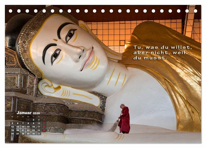 Buddhas Worte und Ratschläge sind in allen Lebenslagen hilfreich und wohltuend. Dieser Kalender erfreut Sie jeden Monat aufs Neue mit buddhistischen Weisheiten in Kombination mit ästhetischen Fotografien.