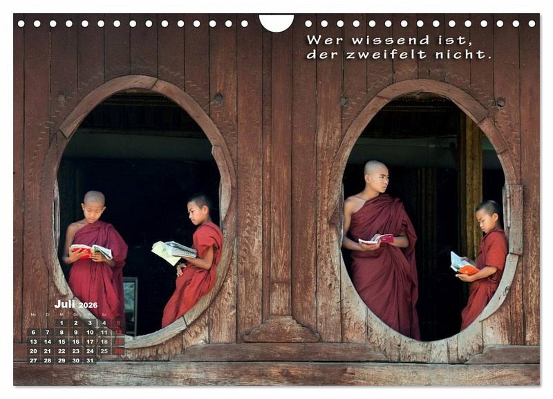 QUALITÄT - Hochwertiger Fotokalender mit 12 wunderschönen Motiven auf lichtbeständigem Bilderdruckpapier, robuste Spiralbindung mit Aufhängebügel.NACHHALTIG - deutliche Abfallreduzierung durch bedarfsgerechte Einzelstückfertigung, umweltfreundliches FSC-zertifiziertes Papier, Produktion in Deutschland, klimabewusste Logistik.PERFEKTES GESCHENK - Kalender für Freunde und Familie, für Kinder und Erwachsene, jung und alt, zu Weihnachten, Geburtstag oder zwischendurch.VIELFALT - Bildkalender in verschiedenen Formaten, z.B. DIN A5, DIN A4, DIN A3 sowie DIN A2. Ob Naturmotiv, Gemälde oder Fotos, ideal für ein persönliches Wohlfühlambiente.Buddhistische Weisheiten für alle Lebenslagen mit Fotografien zum Träumen. von Autor(in): Globe VISUAL