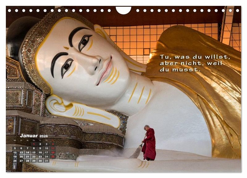 Buddhas Worte und Ratschläge sind in allen Lebenslagen hilfreich und wohltuend. Dieser Kalender erfreut Sie jeden Monat aufs Neue mit buddhistischen Weisheiten in Kombination mit ästhetischen Fotografien.