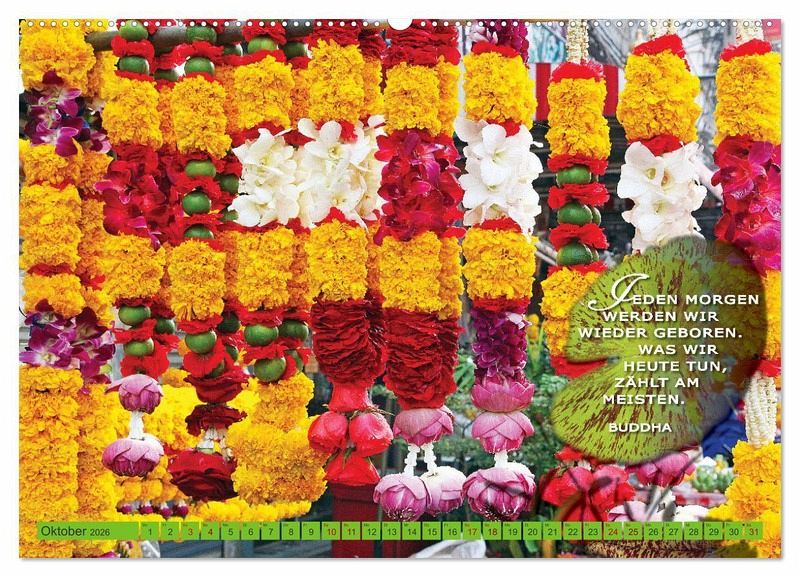 Entdecken Sie die zeitlose Weisheit des Buddhismus jeden Tag mit dem wunderschönen "Buddha's Worte - Der Weg zur Achtsamkeit" Kalender. Dieser inspirierende Kalender ist eine tägliche Quelle der Erleuchtung und Achtsamkeit.Jeder Monat des Jahres ist mit einem Zitat aus den Lehren Buddhas liebevoll gestaltet. Die kurzen, aber kraftvollen Worte führen Sie sanft auf den Pfad der Achtsamkeit und inneren Harmonie. Tauchen Sie ein in die tiefe Weisheit des Buddhismus und finden Sie Inspiration für Ihr tägliches Leben.Der Kalender ist ästhetisch sehr ansprechend gestaltet mit Bildern der Reisefotografin Gabriele Gerner, die insgesamt mehrere Jahre in Asien verbracht hat. Bringen Sie Ruhe, Klarheit und Harmonie in Ihr Leben und lassen sie sich den Weg zur Achtsamkeit zeigen.