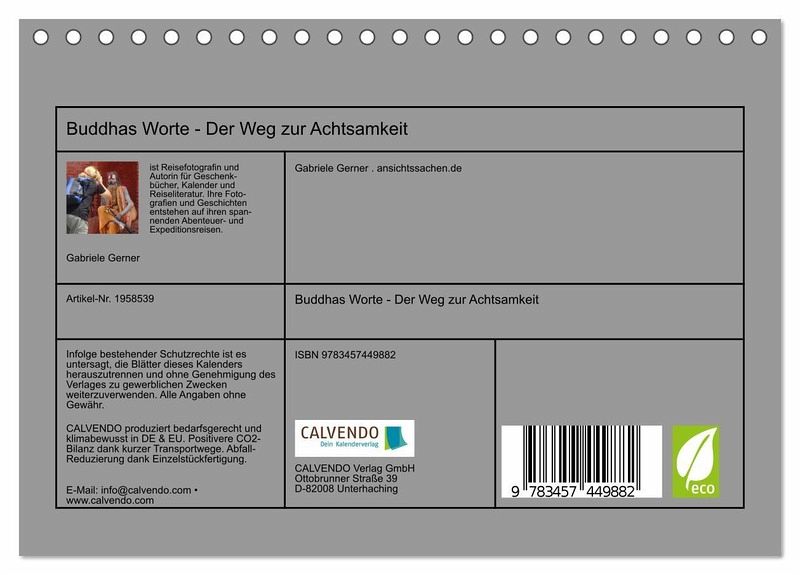 QUALITÄT - Hochwertiger Fotokalender mit 12 wunderschönen Motiven auf lichtbeständigem Bilderdruckpapier, robuste Spiralbindung.NACHHALTIG - deutliche Abfallreduzierung durch bedarfsgerechte Einzelstückfertigung, umweltfreundliches FSC-zertifiziertes Papier, Produktion in Deutschland, klimabewusste Logistik.PERFEKTES GESCHENK - Kalender für Freunde und Familie, für Kinder und Erwachsene, jung und alt, zu Weihnachten, Geburtstag oder zwischendurch.VIELFALT - Bildkalender in verschiedenen Formaten, z.B. DIN A5, DIN A4, DIN A3 sowie DIN A2. Ob Naturmotiv, Gemälde oder Fotos, ideal für ein persönliches Wohlfühlambiente.Entdecken Sie täglich die zeitlose Weisheit des Buddhismus und finden Sie auf Ihrem Weg zur Achtsamkeit und inneren Harmonie Inspirationen. von Autor(in): Gabriele Gerner-Haudum