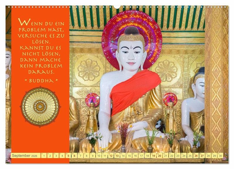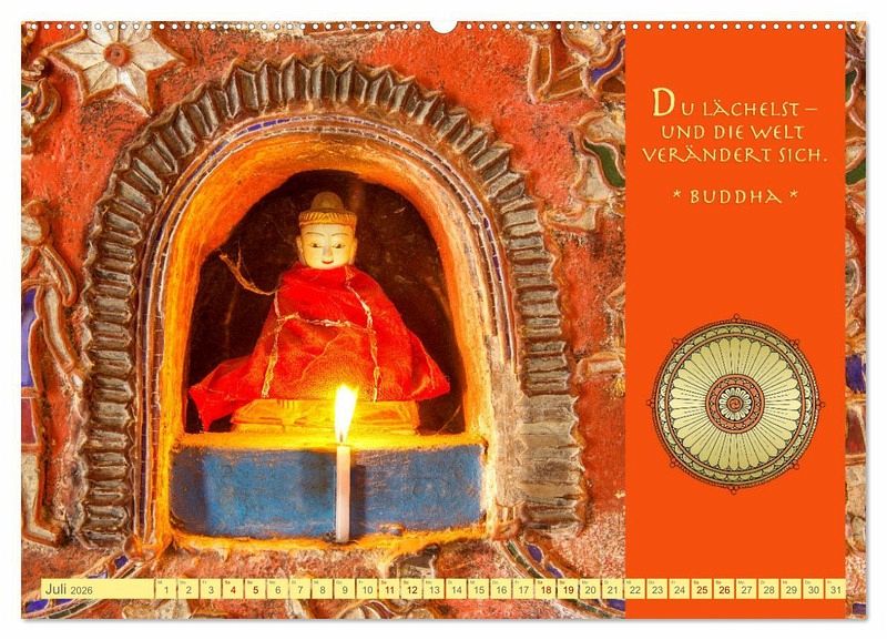 Die schönsten Zitate von Buddha für ein achtsames Leben. Dieser Kalender zeigt zwölf meditative Fotografien mit je einer Lebensweisheit. Zitate und Weisheiten, die wir in allen erdenklichen Lebenslagen anwenden können. Dieser wunderschöne Kalender ist Wellness für die Seele.